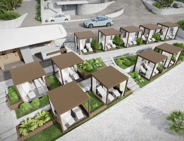 - Privátny bazén a osobný AI asistent v každom apartmáne.