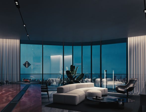 - Strešný bazén, fitness, záhrady a prémiové interiéry.