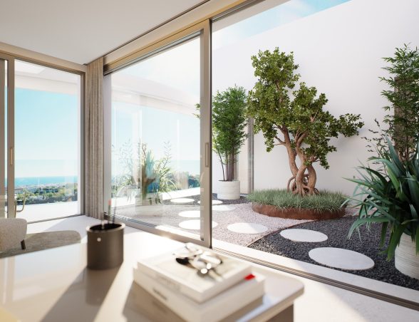 Apartmán so záhradou v luxusnom plážovom komplexe s výhľadom na Gibraltár