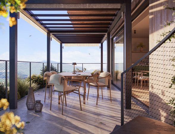 - Priestranné terasy s nerušenými výhľadmi na more.