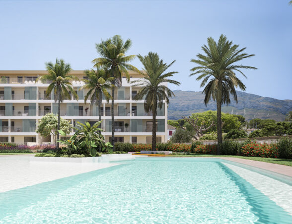 Moderné apartmány v prvej línii pri piesočnatej pláži s vyhrievaným bazénom