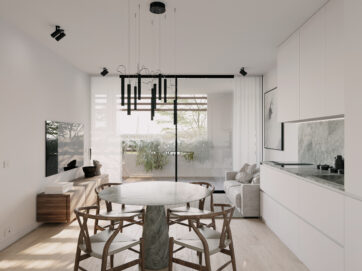 Dva štýlovo navrhnuté bloky, budovy B1 a B2, disponujú rôznymi typmi jednotiek od útulných apartmánov až po priestranné strešné terasy s výhľadom na prístav. Každý apartmán je navrhnutý tak, aby maximálne využil toskánske slnko a morský vánok vďaka veľkým terasám a panoramatickým oknám, ktoré prepájajú vnútorné priestory s nádherným vonkajším prostredím. Elegantné detaily a sofistikované materiály v každom interiéri podčiarkujú výnimočný štandard, ktorý táto nehnuteľnosť predstavuje. V cene nie je zahrnuté nábytkové zariadenie, možnosť zakúpenia nábytkového balíčka.