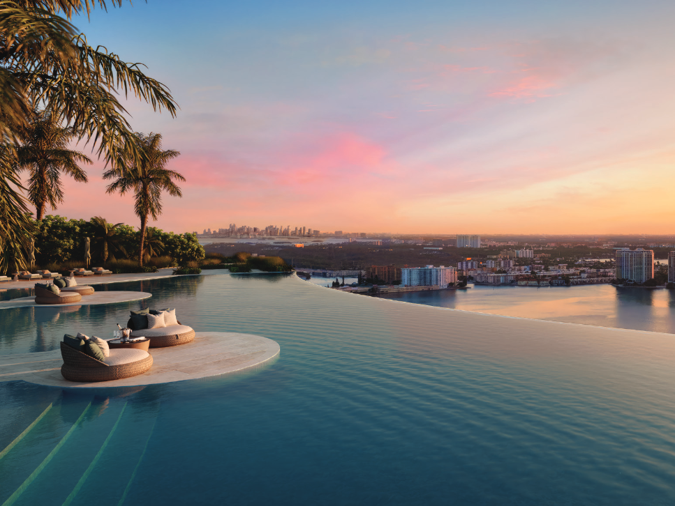 Táto exkluzívna nehnuteľnosť zahŕňa viac ako 6 500 m² wellness, fitness a zábavných zariadení. Medzi nimi sú reštaurácie s bar lounge, súkromné ​​priestory pre akcie a unikátny Ellipse Club. Hostia si môžu užiť privátny Beach Club, bazény pre športové aktivity aj deti, a rozľahlú terasu Sunset Pool Deck s najdlhším infinity bazénom v Južnej Floride, súkromný prístav, exkluzívna reštaurácia od šáfkuchára s Michelinskou hviezdou.